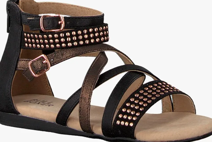 Met deze sandalen AED031FIS van het merk BULLBOXER geef je niet alleen je garderobe een update maar geef je ook je zelfvertrouwen een flinke boost. Want met deze stoere sandalen volg jij helemaal de laatste trends! De buitenkant is gemaakt van zwart leer en heeft roségouden studs, gespjes en enkele bandjes een rosé finish. Het binnenwerk is ook gemaakt van leer en het voetbed voelt heel comfortabel aan. De rubberen zool heeft een fijn profiel maar zorgt wel voor voldoende grip. Je trekt ‘m super snel aan en uit door middel van de ritssluiting achterop de hiel. Combineer ‘m onder een jeans, shortje of jurkje!