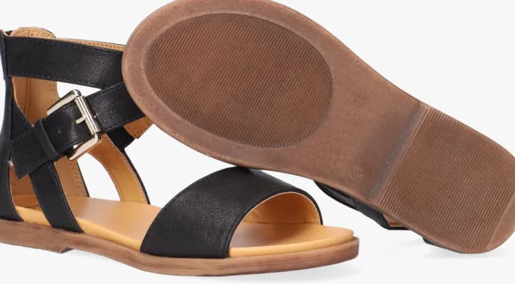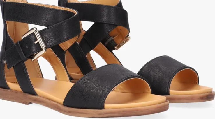 Deze fijnesandalenALM008F1Skomen uit de collectie van het merk BULLBOXER. De buitenkant is gemaakt van zwart lederlooken heeft gekruiste bandjes om de enkel met een opengewerkte hiel en een goudkleurige gesp. Het binnenwerk isgemaakt van lederlooken het voetbed voelt heel comfortabel aan. De rubberen zool heeft een fijn profiel en zorgt voor veel grip. Je trekt ‘m super snel aan en uit door middel van de ritssluiting achterop de hiel.Een ideaal sandaaltje want door zijn mooie eenvoud past hij werkelijk onder ieder outfitje!