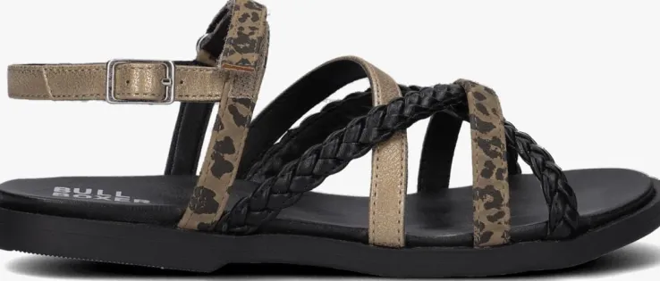Deze fijnesandalenALM017 komen uit de collectie van het merk BULLBOXER en geven jouw outfit een stoere touch. De buitenkant is gemaakt van zwart, goud en taupekleurig leder -en suèdelooken zijn voorzien van trendy gevlochten bandjes en een stoere panterprint. De bandjes aan de voet zijn gekruist en daardoor lekker speels. Je trekt ‘m super snel aan en uit door middel van de klittenbandsluiting op de wreef en met de gespsluiting aan de zijkant maak je hem goed passend naar de voet. Het binnenwerk isgemaakt van lederlooken het voetbed voelt heel comfortabel aan. De rubberen zool heeft een fijn profiel en zorgt voor veel grip. Een fijn sandaaltje voor al die heerlijke zomerse dagen!