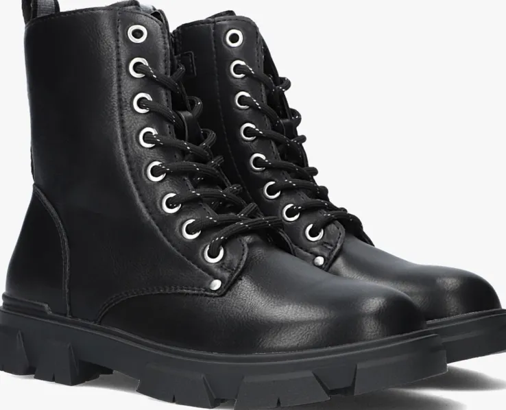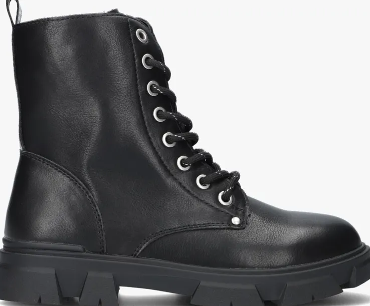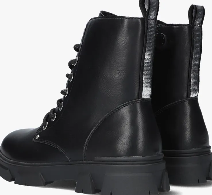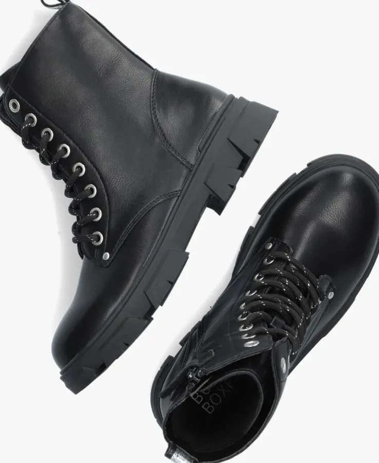 Deze gave veterboot AAF504 voor stoere meiden komt uit de collectie van het merk BULLBOXER. Dit item is gemaakt van zwart lederlook en heeft toffe details, zoals het zilverkleurige hiellusje, de zilverkleurige draad in de veters, de merkstud op de voorvoet en de grove zool. De schoen heeft een vast voetbed en het binnenwerk is gemaakt van lederlook. De chunky zool creëert een stoere look, terwijl hij tegelijkertijd voor veel grip en stabiliteit zorgt. Daarnaast schiet je de schoen snel en eenvoudig aan dankzij de handige ritssluiting aan de zijkant. De schachthoogte is 14 centimeter, gemeten bij maat 35.