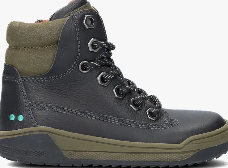 Deze stoere veterbootsREMCO ROCK komen uit de collectie van het Nederlandse merk Bunnies Jr. Dit model is uitgevoerd in zwart leer in combinatie met groene details van nubuckleer, zoals de gevoerde enkelkraag en het oversized merklabel op de tong. Naast de vetersluiting heeft deze boot ook een ritssluiting zodat je ze nog gemakkelijker aan- en uit kunt trekken. De voering is gemaakt van leer en beschikt over een uitneembaar voetbed. De rubberen zool heeft een stoer profiel voor veel grip tijdens het rennen, vliegen en klauwteren. Jij rockt ‘m helemaal met deze stoere veterboot!