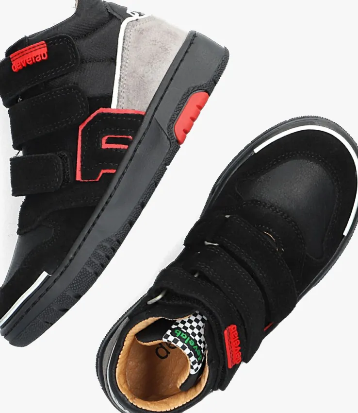 Deze toffe én comfortabele sneaker 45707 is van het merk DEVELAB. Dit hoge model is uitgevoerd in textiel met panelen van leer en suède in de kleuren zwart en grijs. De schoen heeft verschillende leuke details, zoals het merklabel op de tong, het merkembleem op de sluiting, de afgebroken merkopdruk op de zijkant en de witte merkopdruk op de hiel. Ook tof is het witte stootrandje op de neus en de lichtgrijze, suède hiel. Het binnenwerk is gemaakt van leer en het dempende voetbed is uitneembaar. Door de klittenbandsluiting wordt aan- en uittrekken kinderspel en de rubberen loopzool met gripvast profiel zorgt voor voldoende stabiliteit. Een stoere schoen waar kinderen heerlijk op buitenspelen!