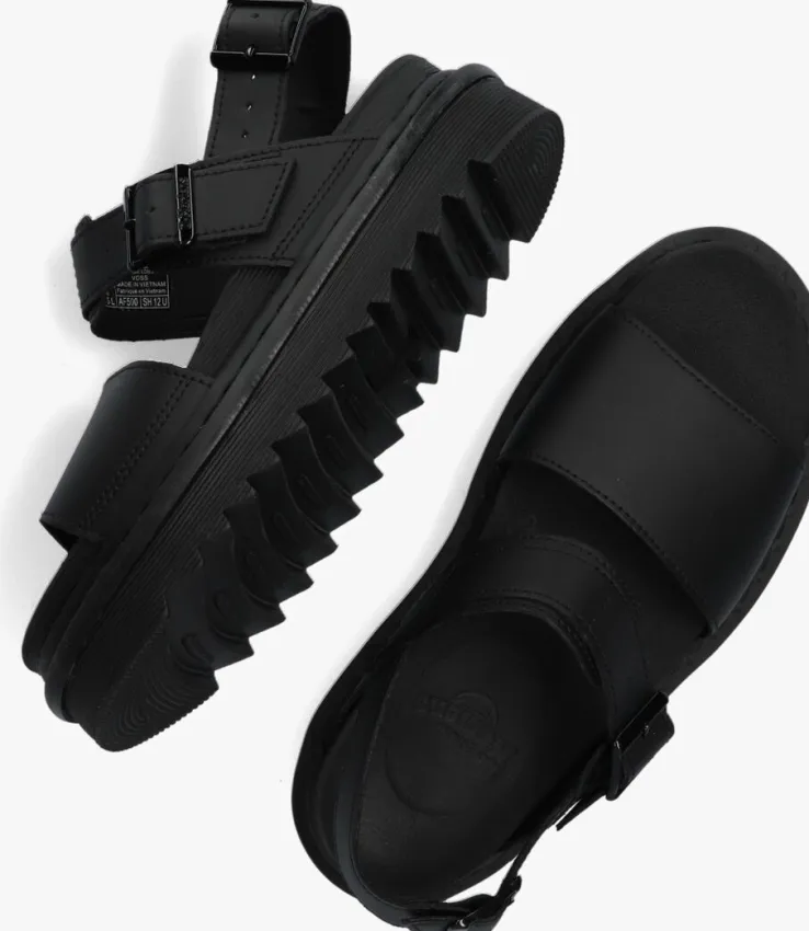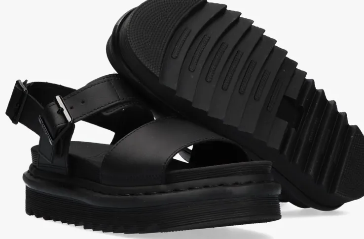 Een ultra-comfortabelesandaalmet een karaktervolle, stoere Dr. Martens-stempel, dat is deze zwarte platformsandaalVOSS! Ditlichtgewicht item is gemaakt van 100% gecoat leer met een matte afwerking en een zacht oppervlak. Het binnenwerk is van textiel en lederlook en het SoftWair™-voetbed heeft een dempend karakter. De sandaal heefteen aantalkenmerkende Dr. Martens accenten zoals de gegroefde zoolrand en de ultrastevige Goodyear-zoolrand met stiksel. Hij kangemakkelijk passend aan de voet worden gemaakt door de twee metalen gespen en dankzij de subtiele wedge creëer je extra hoogte. Deze sandaal steunt op een dikke, maar superlichte EVA-zool van 5 centimeter dik met geribd profiel voor perfecte grip. Draag ze onder een jeans of ga de uitdaging aan en match ze onder een rokje,jurkje of boiler suit. *Maatadvies: schoenen van Dr. Martens moeten eerst goed ingelopen worden, maar daarna wil je nooit meer zonder!