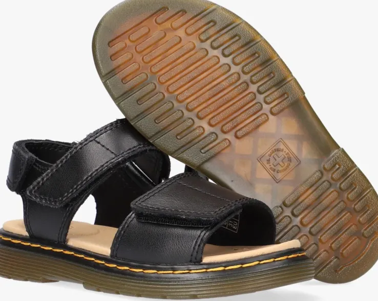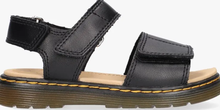 Een klassiek sandaaltjemet een karaktervolle, stoere Dr. Martens-stempel, dat is deze zwarte sandaalROMI J. Dittoffe item is gemaakt van klassiek, gewaxt anilineleer ‘Americanstyle’, een wasachtig volnerfleer met een lichte glans en een stoer karakter.Het binnenwerk is van leer met een rubberenSoftWairâ„¢-voetbed met dempend karakter. De sandaal heefteen aantalkenmerkende Dr. Martens accenten zoals de gegroefde zoolrand en de ultrastevige Goodyear-zoolrand met geel stiksel. Hij kangemakkelijk passend aan de voet worden gemaakt door het klittenband. Deze sandaal steunt op een dikke, maar superlichte zool van 1,5 centimeter onder de voorvoet en loopt naar achteren toe op tot 2,5centimeter dik. Met deze sandaal ben je klaar om de wereld te gaan verkennen.