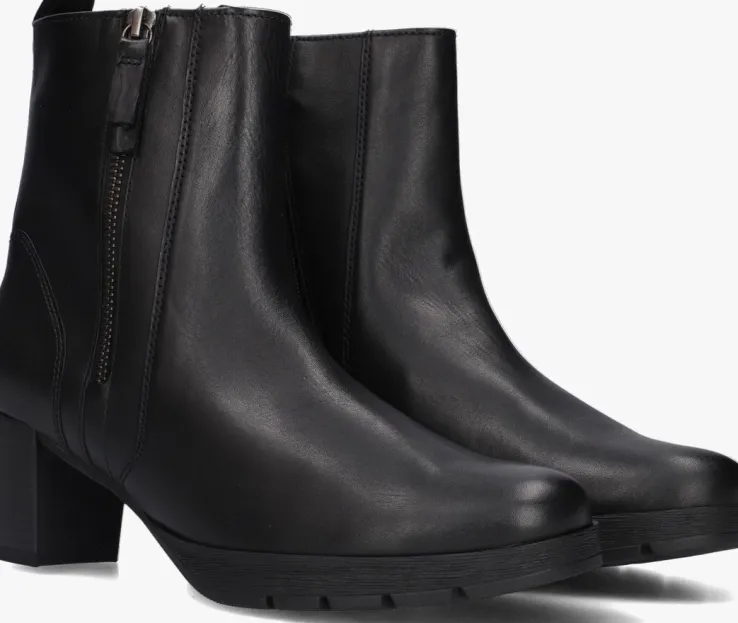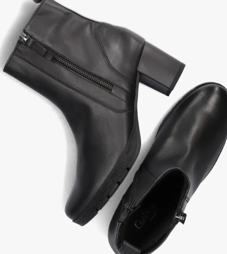 Stap stijlvol de dag in met deze prachtige zwarte enkellaarzen van GABOR. Met de leren buitenkant en blokhak stralen ze elegantie uit. De blokhak van 6 centimeter zorgt voor een comfortabele en trendy look. De laarzen hebben een schachthoogte van 15 centimeter en sluiten gemakkelijk met een rits. De binnenkant is gemaakt van leer en textiel, wat zorgt voor een zachte en ademende ervaring. De rubberen zool biedt goede grip en duurzaamheid. Combineer deze enkellaarzen met een mooie jeans en een oversized trui voor een casual-chique look. Of draag ze onder een jurkje voor een vrouwelijke touch. Met deze GABOR enkellaarzen ben je altijd in stijl.