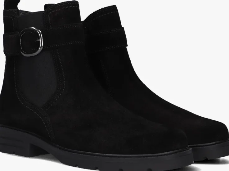 Met deze trendy enkellaarzen van GABOR ben jij helemaal klaar voor het nieuwe seizoen! De zwarte suède buitenkant geeft de laarzen een stijlvolle uitstraling, terwijl de elastische inzet met siergesp zorgt voor een speels effect. De chunky zool geeft niet alleen een stoere touch aan de laarzen, maar zorgt ook voor extra comfort. De laarzen sluiten gemakkelijk met een rits aan de zijkant. Combineer deze enkellaarzen met een mooie jeans en een oversized trui voor een casual look. Of draag ze onder een jurkje voor een trendy en vrouwelijke uitstraling. Met deze GABOR enkellaarzen ben jij altijd on-trend!