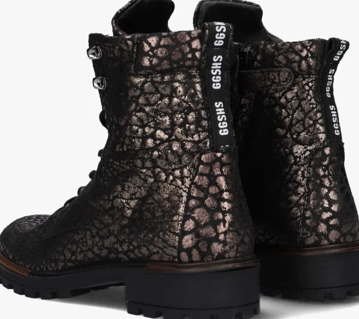 Deze veterboots van het merkGIGAis een absolutemusthave. Dit model G4039 is uitgevoerd in zwart suède met een super leuke shining coat van bronskleurig craquelé. Het laarsje heeft een handige veter- en ritssluiting om ze gemakkelijk en snel aan en uit te doen. De schoen is fraai afgewerkt met vier stoere veterhaken, textiel logotape met aantreklusje achter op de schacht en bruine inzetstukken in de zoolrand. Het binnenwerk is gevoerd met heerlijk zacht leatherlook en heeft een uitneembaar en dempend voetbed. De zool is van rubber en heeft een grof profiel wat zorgt voor extra grip en stabiliteit tijdens het rennen, vliegen en spelen. Het kleine blokhakje geeft je kleine meid wat extra lengte. Combineer ze onder al je favoriete outfits, met dit laarsje maak je iedere outfit stijlvol af.