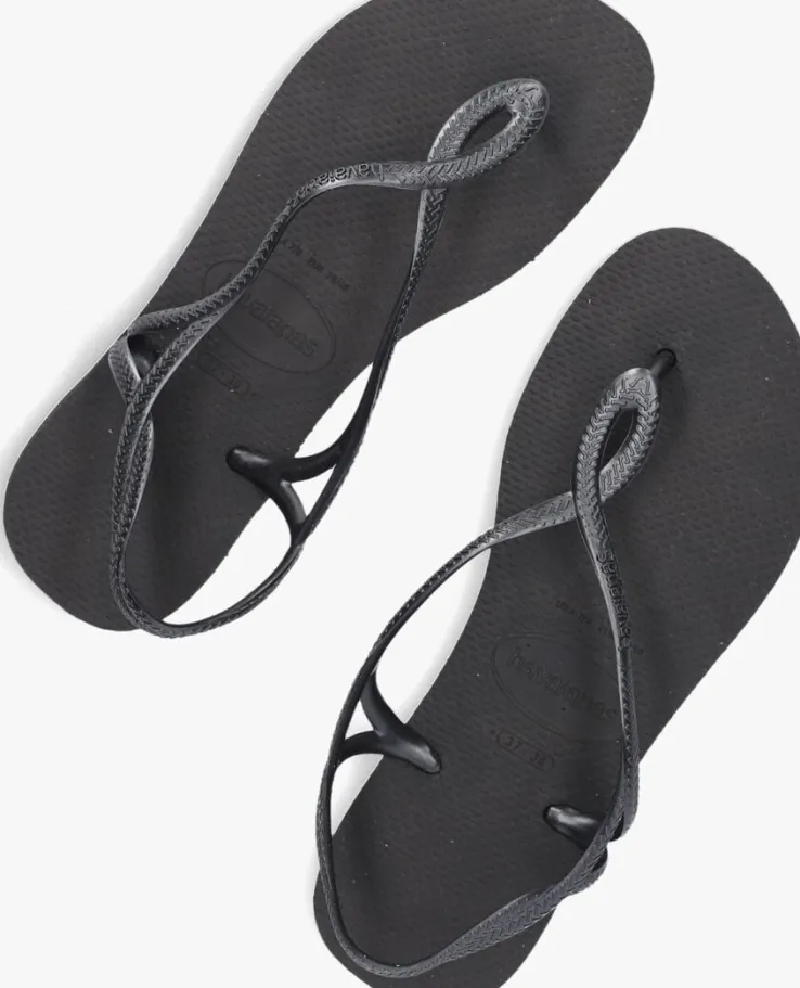 Een absolute zomer must-have van het Braziliaanse merk Havaianas; dat is deze eleganteLUNA sandaal. Dit zwarte exemplaar heeft smalle bandjes voor een extra feminin look en een handige slingback, zodat hij goed om je voet blijft zitten. Ophet bandjeis de merknaam in reliëf te vinden. De sandaal is comfortabel, duurzaam, lichtgewicht, anti-slip, hittebestendig én waterresistant. Wat wil je nog meer? Dat de zon schijnt en je ze de hele dagkan dragen natuurlijk!