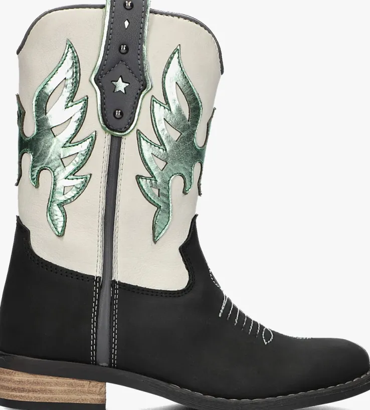 Het merk HIP heeft niet voor niks het woord ‘hip’ als merknaam. Met een schoen uit de collectie van dit merk ben je gegarandeerd van een hippe schoen met een trendy uitstraling. De buitenkant is uitgevoerd in zwart leer in combinatie met een witte schacht en super stoere details. Zo heeft dit model echte cowboy-accenten zoals het opgestikte vlammenpatroon in een metallic groene kleur, de afgeronde schacht en de aantreklus aan de buitenzijde. Je trekt ‘m super gemakkelijk aan dankzij de ritssluiting aan de binnenzijde. De voering is gemaakt van leer en het dempende voetbed is uitneembaar. De rubberenzool heeft een hakje van 3 centimeter en maakt dit model helemaal af! Laat je kleine meid stralen op het schoolplein!