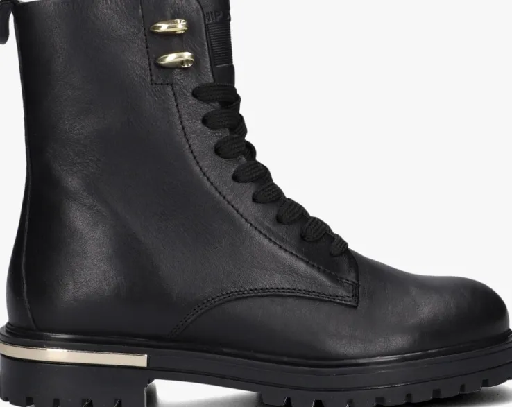 Maak kennis met de stoere H1626 veterboots voor meisjes. Deze zwarte boots met een buitenkant van leer en chunky zool zijn perfect voor een dagje shoppen of een avontuurlijke boswandeling. De ronde neus en de rits aan de zijkant zorgen voor een comfortabele pasvorm, terwijl het uitneembare voetbed en de leren binnenkant extra comfort bieden. Met een schachthoogte van 16 cm geven deze boots elke outfit een edgy touch. Combineer ze met een trendy jeans of een schattig jurkje voor een stijlvolle look. Het merk HIP staat garant voor kwaliteit en stijl, ideaal voor elke jonge dame.