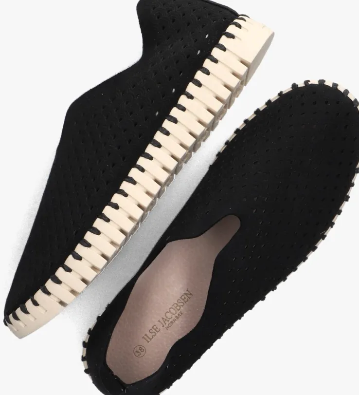 Of je nou naar het strand gaat of een dagje de stad doorkruist, met deze toffe zwarte instapper TULIP3275 van het merk Ilse Jacobsen ben je klaar voor al jouwavonturen!Dit Deense design is handgemaakt van ademend en sneldrogend textiel (100% microvezel) met een opengewerkt schubbendessin. De zool van off-white rubber is lichtgewicht en voelt soepel en zacht aan. De schoen is ongevoerd voor extra ventilatie tijdens warme zomerdagen en destevige, uitneembare binnenzool van leer geeft veel support. Een casualen comfortabel model met een vernieuwende look!