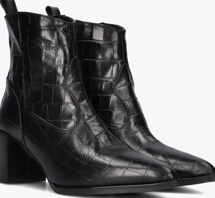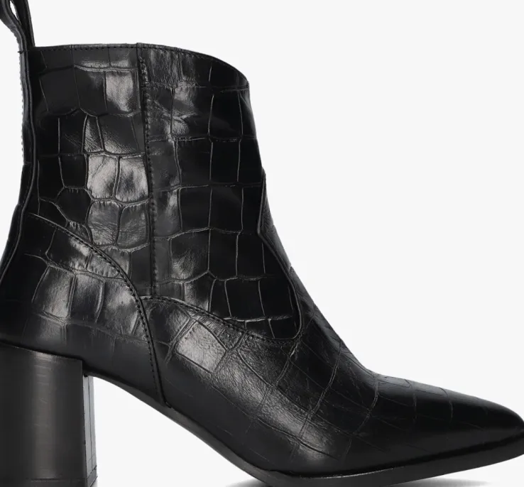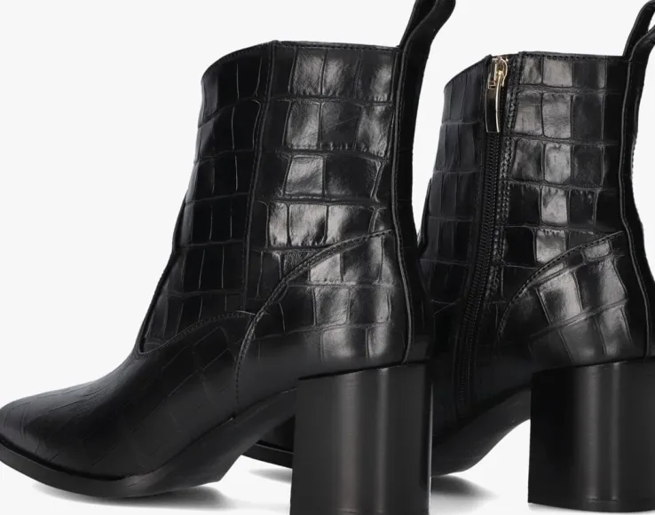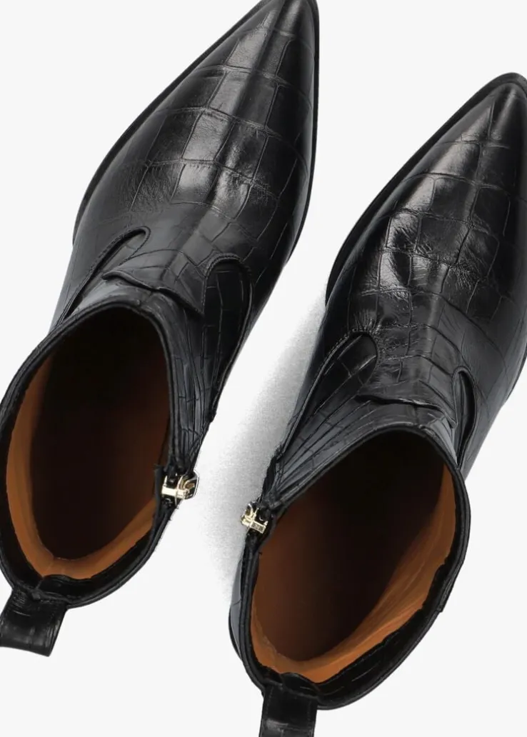 Stap stijlvol de dag in met deze zwarte enkellaarzen met krokodillenprint. Gemaakt van hoogwaardig leer, zowel aan de buiten- als binnenkant, bieden ze comfort en klasse. De puntige neus en de stevige blokhak van 7 cm geven je outfit een elegante touch. Perfect voor een dag op kantoor of een avondje uit. Combineer ze met een strakke jeans of een stijlvolle rok voor een verfijnde look. De rits aan de zijkant zorgt voor een gemakkelijke instap, terwijl de rubberen zool zorgt voor grip en stabiliteit. Met een schachthoogte van 14 cm zijn ze de ideale aanvulling op je garderobe.