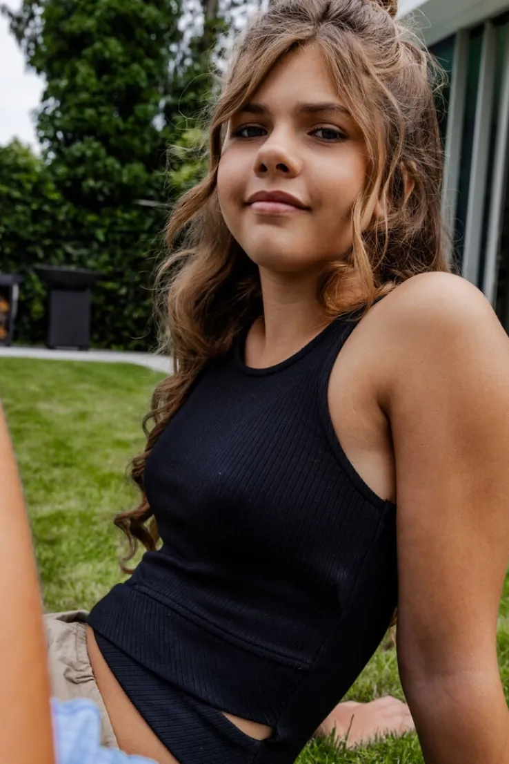 Met deze zwarte LOOXS 10sixteen top ben jij helemaal on-trend! Draag hem met een stoere jeans voor een casual look of combineer hem met een rok voor een meer geklede uitstraling. Perfect voor een dagje shoppen of een gezellige speeldate met vriendinnen. Maak je outfit compleet met wat subtiele sieraden en je bent klaar om te stralen!