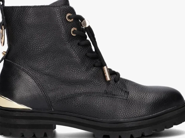 Het bekende fashionmerkMexx heeft een mooietijdloze enkwalitatieve schoenencollectie, geïnspireerd op het geroezemoes en de energie van de stad. Comfortabele items om iedere look een fashionable finishing touch te geven! Deze zwarte veterboots FELICITYis niet alleen heel mooi, maar ook uniek door de strak afgewerkte vetersluiting met handig trekkoordje waarmee je ‘m gemakkelijk op maat maakt. De boot is uitgevoerd in gestructureerd leeren heeft een super zacht textiel binnenwerk met een uitneembaarvoetbed. Het voetbed heeft een dempende schuimlaag voor extra loopcomfort en met de handige zijrits en aantreklus trek je deze bootheel makkelijk aan-en uit. Toffedetails zijn de twee goudkleurige veterringen, de goudkleurige hielstabilisator met merkembleem en de goudkleurige stud bij de enkel. De rubberen zool bevat een mooi lijn spel en met het grove profiel krijgt de schoen een extra stoere uitstraling.