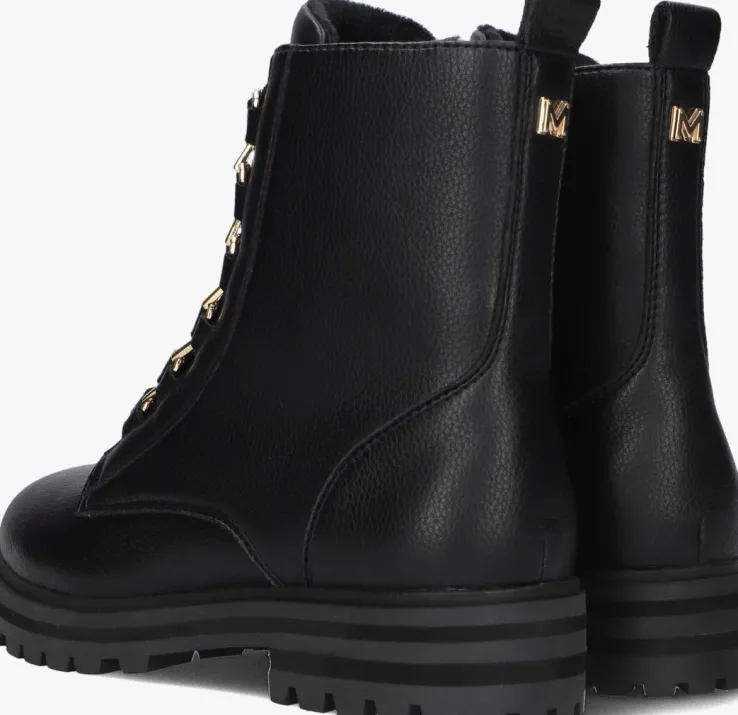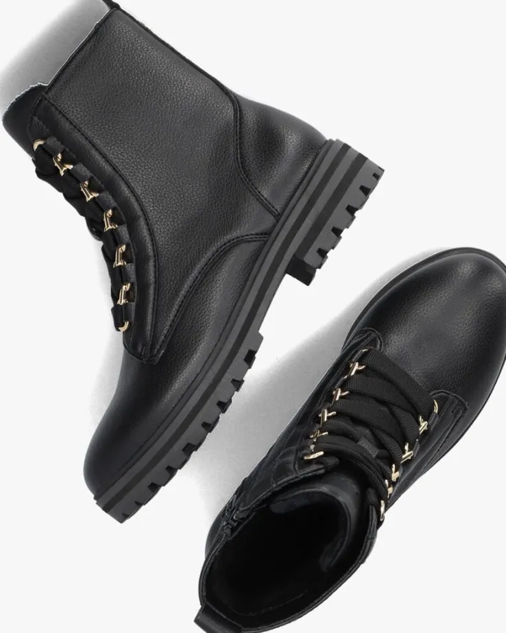Ontmoet MADELAINE, de stoere veterboots van MARUTI die perfect passen bij jouw edgy stijl. Met dit toffe model en de chunky zool geven deze zwarte boots een krachtige uitstraling aan elke outfit. Het bovenwerk bestaat uit leatherlook en heeft op de hiel een aantreklus met goudkleurig element. De voering bestaat uit zacht fleece textiel voor een heerlijk comfort en het voetbed is niet uitneembaar. Met de handige rits aan de binnenzijde sluit je deze boots moeiteloos en maak je ze met de vetersluiting passend. De veterlusjes zijn voorzien van een goudkleurige schakel voor een luxe touch en op de tong prijkt een merkreliëf. De rubberen zool zorgt voor grip en stabiliteit. Combineer dit model met een leren jasje en een toffe jeans voor een stoere look. Of draag ze onder een jurkje voor een verrassend contrast!