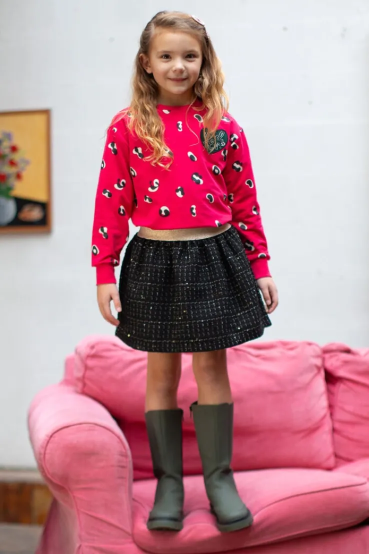 Laat je innerlijke fashionista stralen met de SKIRT RUBY van MOODSTREET. Deze zwarte minirok is perfect voor meisjes die houden van stijl en comfort. Ideaal voor een dagje shoppen uit of een feestje. Combineer met een blouse en sneakers voor een casual look, of ga voor een chique uitstraling met een zwarte top en ballerina’s.