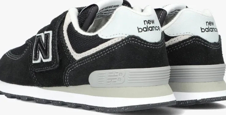 Deze sportieve lage sneaker PV574is van het merk New Balance. De schoen is gemaakt van zwart suède in combinatie metzwart meshen heefteen binnenvoering van zacht textiel en een uitneembaar voetbed. Opvallend zijn de merkopdrukken op dehiel en beide zijkanten. Een extra detail is de grijze hielstabilisator. De witte zool met grijze tussenzool is gemaakt van rubber en heeft een zwarte loopzool met een grof profiel. Je trekt ze super gemakkelijk aan en uit dankzij de klittenbandsluiting.