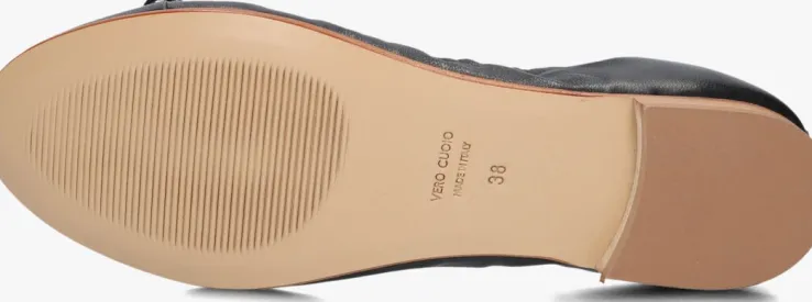 Stap in stijl met deze zwarte ballerina’s van NOTRE-V. Het leer aan de buitenkant en binnenkant zorgen voor een comfortabele pasvorm, terwijl de rubberen zool zorgt voor grip en stabiliteit. De neus is afgewerkt met zwart leer en een strikje. Combineer deze trendy ballerina’s met een zwarte skinny jeans en een witte blouse voor een chique look. Of draag ze onder een zomerjurkje voor een casual en toch elegante uitstraling. Met deze ballerina’s ben je helemaal klaar voor elke gelegenheid. Laat jezelf stralen en schitteren met deze metallic must-haves!
