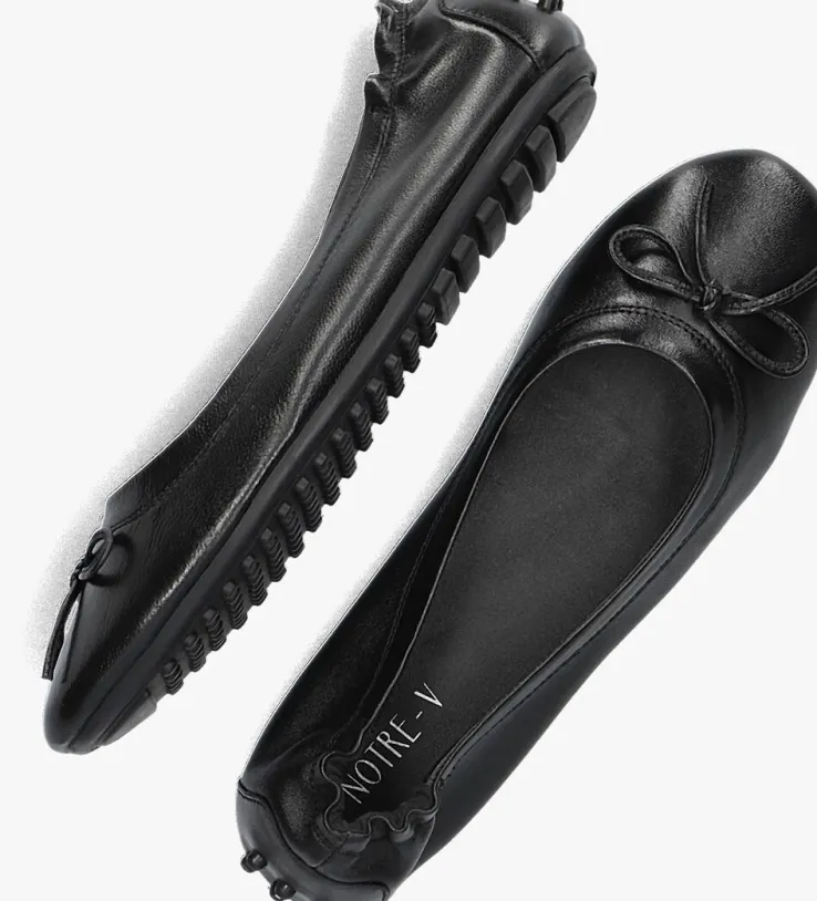 Een opvallende en elegante ballerina is deze zomer onmisbaar in je schoenenkast! Dit zwarte model KL-4528 is van het merk NOTRE-V en maakt al jouw outfits helemaal af! Deze ballerinais uitgevoerd in soepelleer met een mooie glans en stiksels. De neus is voorzien van eenveterstrikje. Het binnenwerk is suède uitgevoerd met een vast, leer voetbedwelke voorzien is van een schuimlaag en zorgt ervoor dat de ballerina’sde gehele dag door comfortabel gedragen kunnen worden. De rubberen loopzool is voorzien van nopjes, deze komen ook terug op de hiel. Draag ze onder een jeans of pantalon naar het werk of neem ze mee in je handtas om lekker te kunnen dansen na een hele dag ophakken te hebben gelopen.