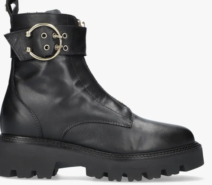 Deze zwarte bikerboots 03-19 van het luxe merk NOTRE-V zijn dé trend dit seizoen en maken jouw outfit extra cool! Ze zijn stoer, comfortabel én trendy door de kwalitatieve materialen in combinatie met de toffe vormgeving. Daarnaast sluiten ze mooi aan en accentueren ze de mooie vormen van jouw benen! De boots zijn gemaakt van luxe en soepel leer met een subtiele glans en opvallende details. Zo heeft hij een goudkleurige rits over de wreef lopen in combinatie met een leren band met een opvallende goudkleurige gespsluiting en een oversized aantreklus op de achterkant met merkstud. Met de handige ritssluiting aan de zijkant van de boot hoef je niet iedere keer de gespsluiting los te maken en trek je ‘m gemakkelijk aan- en uit. Het binnenwerk is leer gevoerd met een vast en dempend voetbed voor veel comfort de gehele dag door. De chunky zool is gemaakt van lichtgewicht microrubber en heeft een grof profiel voor een zeer goede grip. De zool is ruim 3 centimeter dik onder de voorvoet en loopt naar achteren toe op tot 5 centimeter hakhoogte. De schachtheeft een hoogte van 16 centimeter, gemeten bij maat 38. Combineer ze nonchalant met een jeans of lekker stoer met jouw lievelingsjurk!