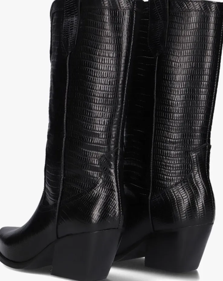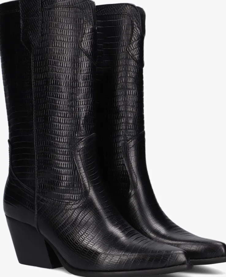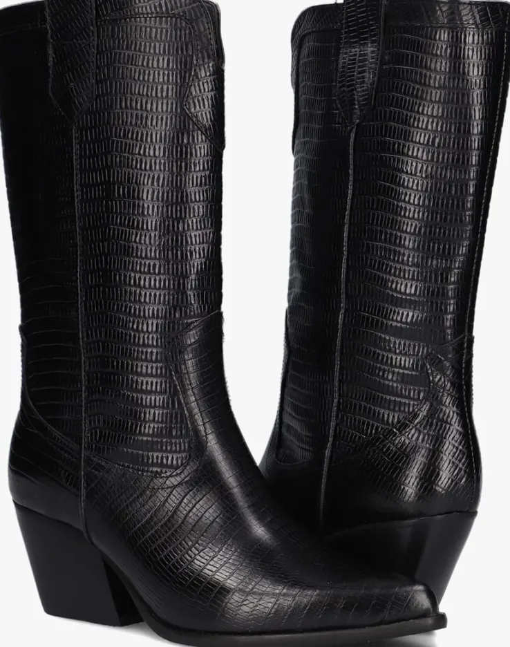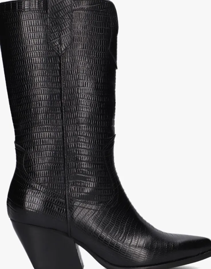 Deze cowboylaars AR192 met city-western accenten komt uit de collectie van het mooie merk NOTRE-V. De elegante Italiaanse ontwerpen van het merk NOTRE-V zijn er voor de verfijnde vrouw die er graag effortless chic uit wil zien. De producten zijn gemaakt van luxe materialen met subtiele accenten en een knipoog naar de laatste trends.Dit model met stoere vormgeving is gemaakt van zwart leer met een reptielenprint. Dit model heeft een mooi patroon aan de schacht, een puntige neus, opstaande naden, een uitsnijding aan de voorzijde, een gelaagde blokhak en de aantreklussen boven aan de schacht, waarmee je dit model gemakkelijk aan-en uit trekt. De voering is gemaakt van leer en het dempende voetbed is niet uitneembaar. De blokhak met houtlook heeft een hoogte van 7 centimeter en de schachthoogte is 27 centimeter. De rubberen loopzool met lijntjesprofiel zorgt voor voldoende grip, steun en stabiliteit! Combineer ‘m onder een zwierige jurk en steel de show!