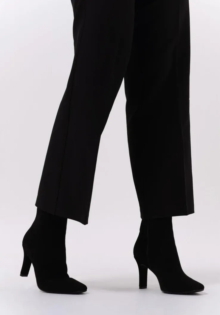De elegante Italiaanse ontwerpen van het merk NOTRE-V zijn er voor de verfijnde vrouw die er graag effortless chic uit wil zien. De producten zijn gemaakt van luxe materialen met subtiele accenten en een knipoog naar de laatste trends. Dit zwarte ultrafeminin enkellaarsje 7436is gemaakt van zacht suèdeen heeft een spitseneus en een smalle hak. De hak van zo’n 8 centimeterhoog benadrukt jouwvrouwelijkheiden laat je benen mooi uitkomen. De voering is gemaakt van leeren heeft een vast voetbed. Dankzij de ritssluiting aan de binnenzijde van de laars ervaar je veel gemak bij het aan- en uittrekken. Het fijne profiel onder de rubberen zool zorgt voor voldoende grip en stabiliteit, zodat jij zelfverzekerd naar al je afspraken loopt. Schachthoogte is 14centimeter.