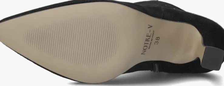 De Italiaanse ontwerpen van het merk NOTRE-V zijn er voor de verfijnde vrouw die er graag effortless chic uitziet. Dit enkellaarsje 21033 met subtiele accenten maakt jouw look compleet! Hij is gemaakt van zwart suède met zilverkleurige glitters, heeft een puntige neus én een elegante kitten heel van 8 centimeter hoog. Leuke details zijn de merkstud op de achterkant van de schacht en het merkreliëf op de zilverkleurige rits. De schoen is leer gevoerd en heeft een vast voetbed met demping voor comfort. De schachthoogte is 9,5 centimeter, gemeten bij maat 38. Draag deze stijlvolle laarsjes onder een jeans of jurk en je bent helemaal klaar voor een nieuwe, mooie dag!