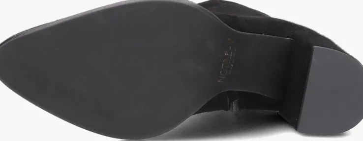 De schoenen van het merk NOTRE-V zijn tijdloos, maar met een knipoog naar de laatste trends. Deze fijne enkellaars 67034 is daar een mooi voorbeeld van. Dit model is uitgevoerd in zwart suède en heeft subtiele details die dit rustige design trendy maken, zoals de spitse neus, de beklede blokhak en de goudkleurige ritshanger met merkreliëf. De blokhak is 8 centimeter hoog en de schachthoogte is 13 centimeter, gemeten bij maat 38. Het binnenwerk is gemaakt van leatherlook ik combinatie met een vast, leer voetbed. De rubberen loopzool heeft een gripvast profiel dat zorgt voor veel stabiliteit bij iedere stap. Een trendy schoen die je makkelijk combineert!