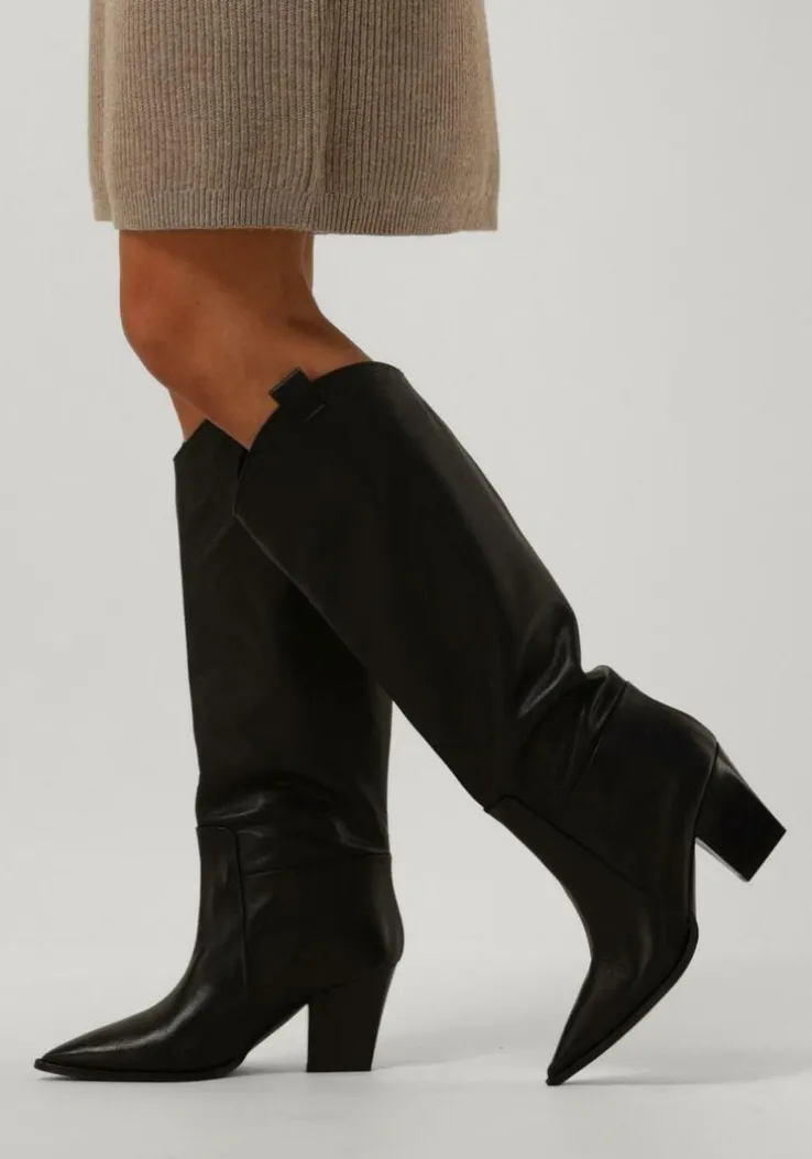 Zo’n city western laars dat zich uitstekend leent om bij ontelbare outfits te combineren én jou een toffe uitstraling geeft, dat is dit zwarte item 35192 uit de collectie van het merk NOTRE-V. De elegante Italiaanse ontwerpen van het merk zijn er voor de verfijnde vrouw die er graag effortless chic uit wil zien. Gemaakt van luxe materialen met subtiele accenten en een knipoog naar de laatste trends. Deze elegante lange laars heeft invloeden van de cowboylaars, zoals de spitse neus, de stabiele westernhak en de afgeronde schacht met aantreklussen. Het bovenwerk is uitgevoerd in zacht leer en het binnenwerk heeft een soepele lederlook voering met een vast voetbed van leer met comfortabele demping. De loopzool met een houtlook is uitgevoerd in rubber en is voorzien van een glad, maar gripvast profiel en het hakje is afgewerkt met een kunststof haktip. De hak heeft een hoogte van ruim 8 centimeter en de schacht heeft een hoogte van 40 centimeter. Wij vinden het een prachtige laars om te dragen onder een jurkje tijdens allerlei activiteiten!