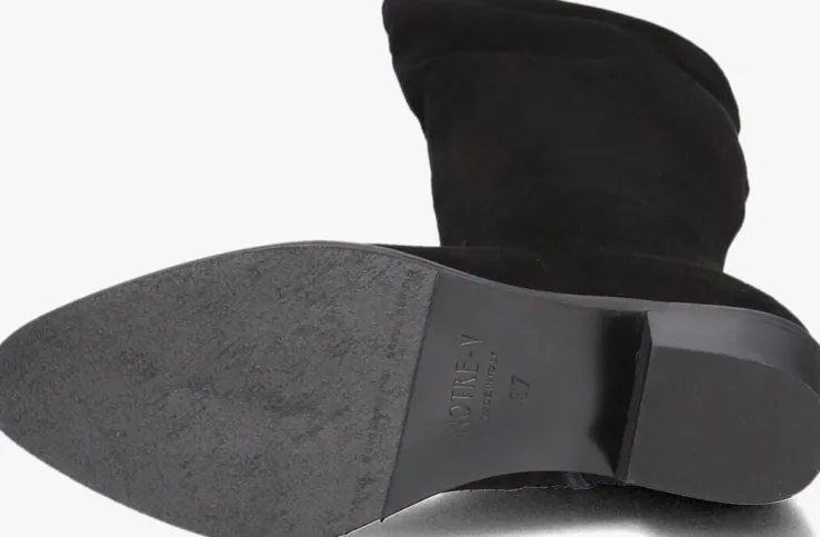 Stap stijlvol de herfst in met deze prachtige zwarte suède hoge laarzen van NOTRE-V. De puntige neus en blokhak van 4 cm geven je outfit een elegante touch. Met een schachthoogte van 43 cm en een leren binnenkant, bieden deze laarzen niet alleen comfort maar ook een luxe uitstraling. Perfect voor een dagje shoppen of een gezellige lunch met vriendinnen. Combineer ze met een strakke jeans of een zwierige rok voor een chique look. De rubberen zool zorgt voor grip en duurzaamheid, zodat je zorgeloos kunt genieten van je dag.