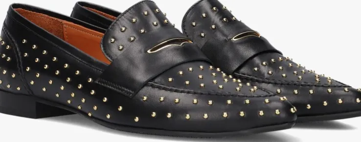 De elegante Italiaanse ontwerpen van het merk NOTRE-V zijn er voor de verfijnde vrouw die er graag effortless chic uit wil zien. De producten zijn gemaakt van luxe materialen met subtiele accenten en een knipoog naar de laatste trends. Met deze opvallende loafer 4625 maak jij jouw outfit compleet en zorg je voor een stoere touch. De buitenkant is uitgevoerd in zwart leer en heeft een mooi, stijlvol silhouet. De voering is gemaakt van leer met een vast dempend voetbed en een hielstuk van suède voor extra comfort. Deze schoen heeft een afwerking van goudkleurige studs over de gehele schoen behalve op de wreefband. De wreefband is voorzien van een uitsnijding in het leer en is opgevuld met een goudkleurig patroon. De gladde zool is gemaakt van rubber en heeft een gelaagd blokhakje van 1,5 centimeter hoog dat de schoen extra elegant maakt. Combineer deze loafer met je favoriete jeans of draag ze onder een leuk rokje.
