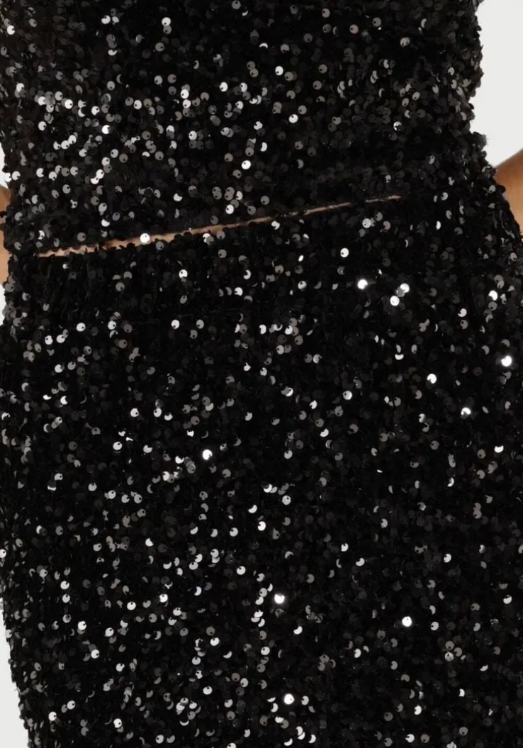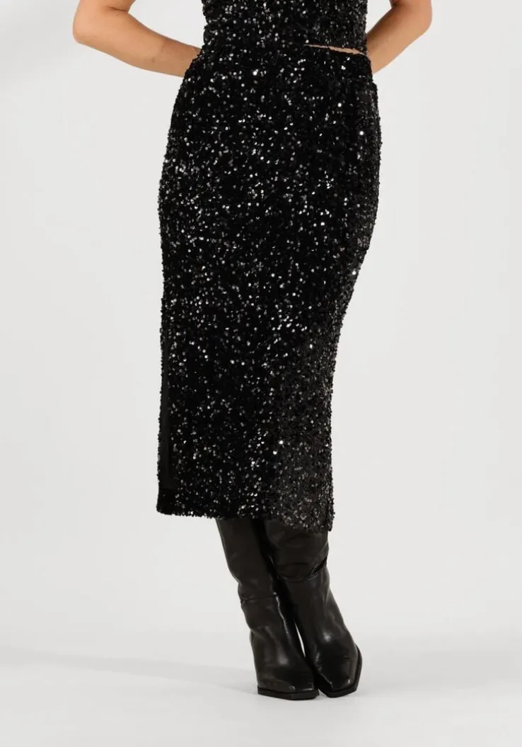 Stralend en stijlvol, de zwarte NV-EMBLA midi rok van NOTRE-V is een echte blikvanger. Perfect voor een chique diner of een avondje uit met vriendinnen. De glanzende stof en elegante snit zorgen voor een verfijnde look. Combineer met een paar hoge hakken en een clutch voor een complete outfit. Deze rok past ook prachtig onder een oversized trui voor een stoere twist. Voel je zelfverzekerd en modieus in deze schitterende midi rok.