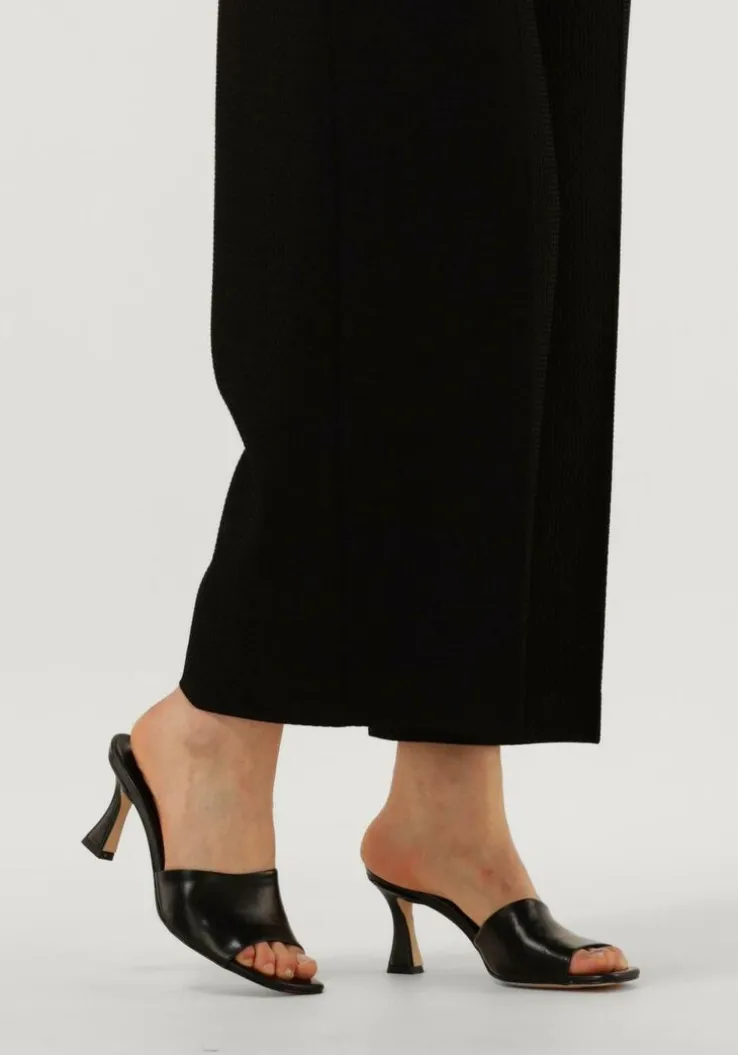 Een muiltje is deze zomer onmisbaar in je schoenenkast! Dit zwarte model 7731 bestaat uithoogwaardig kwaliteitsleer en is van het toffe merkNOTRE-V.Dit muiltje heeft een trendy carré neus, een smalle vormgeving en een brede band over de voorvoet. Het binnenwerk is van leer met eenlicht opgevulde voetbed en goudkleurige merkopdruk. De kittenheel van 8 centimeter hoog is afgewerkt met hetzelfde leer en maakt dit model helemaal af! Met het fijne maar gripvaste profiel in de loopzool ervaar je veel stabiliteit bij iedere stap.Combineer ze stijlvol met jouw lievelingsjurk of -broek!