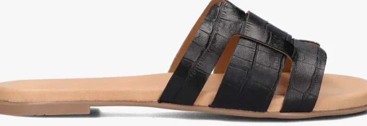 De Italiaanse ontwerpen van het merk NOTRE-V zijn er voor de moderne vrouw die graag gekleed gaat volgens de laatste trends. De producten zijn gemaakt van kwalitatieve materialen met subtiele accenten en een mooie afwerking. Deze opvallende, zwarte slipper 179874met krokodillenprint heeft een brede cut out-band over de wreef die een trendy H vormt. Het binnenwerk is gemaakt van soepel, zacht leer en heeft een dempend voetbed voor extra comfort. De rubberen loopzool heeft een laag hakje van 1 centimeter en een fijn profiel voor voldoende stabiliteit. Combineer deze slipper onder jouw favoriete zomerjurk of draag ze onder een toffe short.