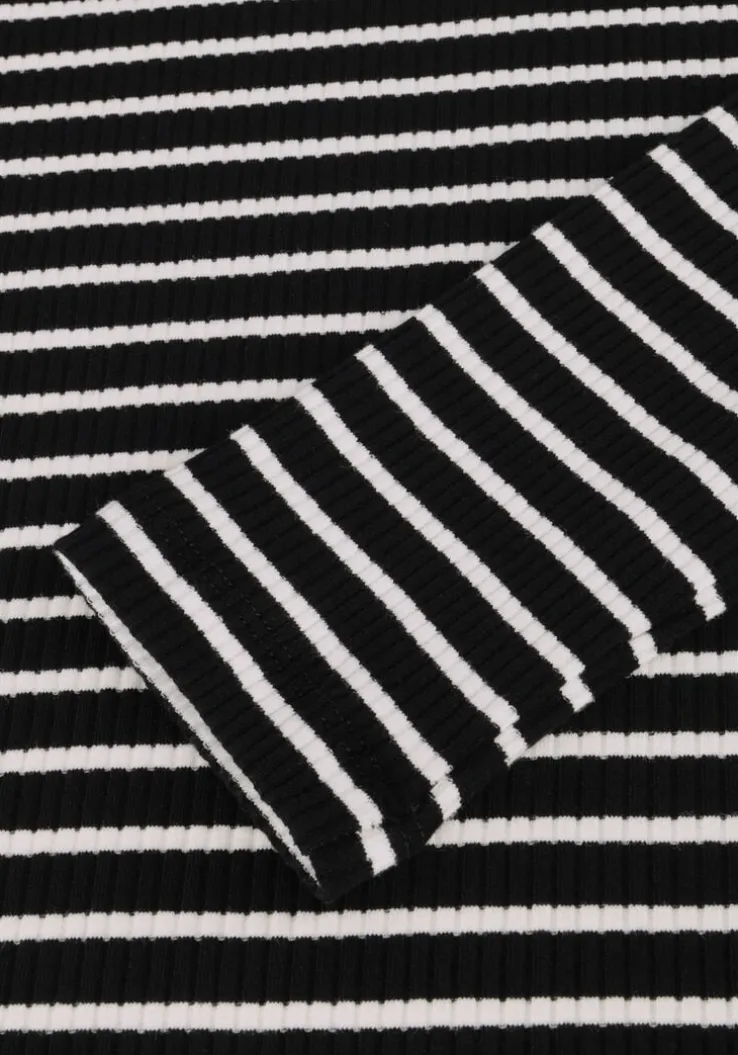 Maak kennis met de NV-EELKE ROUND NECK van NOTRE-V, een stijlvolle zwarte gestreepte top die niet mag ontbreken in je garderobe. Deze veelzijdige top met subtiele strepen draag je moeiteloos tijdens een dagje shoppen of een gezellige lunch met vriendinnen. Combineer met een strakke jeans voor een casual look of draag onder een blazer voor een chique touch. De ronde halslijn en het zachte materiaal zorgen voor een comfortabele fit, terwijl de tijdloze kleur zwart je outfit altijd een elegante uitstraling geeft. Voeg deze must-have toe aan je collectie en geniet van eindeloze combinatiemogelijkheden.