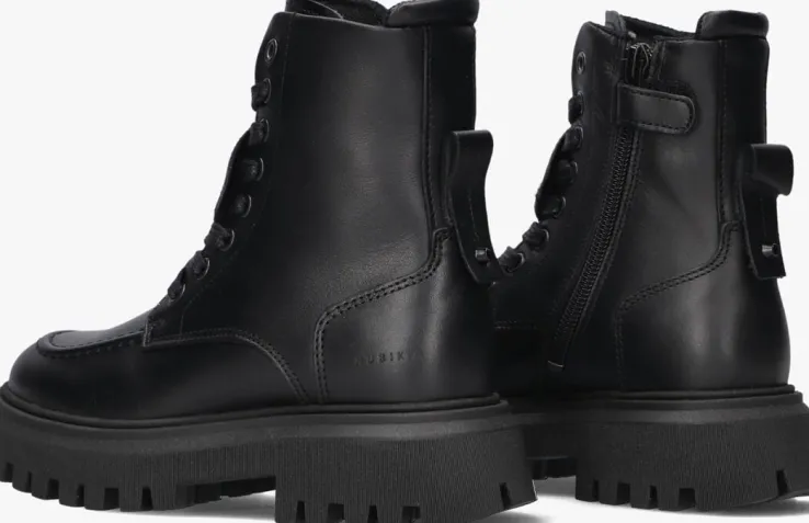 Deze veterboot FAE BOBBI JR komt uit de collectie van het merk NUBIKK en past onder vele outfits. De boot is uitgewerkt in zwart leer en heeft een opstaande neusrand en dubbele stiksels aan de zijkanten. De boot trek je gemakkelijk aan en uit door de ritssluiting aan de binnenzijde. Leuke details zijn de aantreklus op de hiel, het merkembleem van textiel op de hiel en de afneembare smiley aan de veter. De binnenkant is gemaakt van mesh en heeft een uitneembaar voetbed van leer. De chunky zool is gemaakt van rubber en heeft een gripvast profiel. Deze boot geeft jouw outfit een finishing touch!