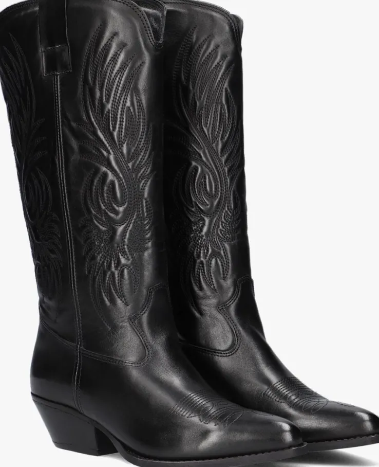 Zo’n cowboylaarsje dat zich uitstekend leent om bij ontelbare outfits te combineren én jou een toffe uitstraling geeft, dat is deze zwarte laars D346 uit de collectie van het merk Omoda. Gemaakt van luxe materialen met subtiele accenten. Deze halflange laars heeft city western details, zoals de spitse neus, het doorgestikte vlammenpatroon op de schacht en neus, de gelaagde westernhak en een stoere rechte schacht met kleine V inkepingen aan de voor en achterzijde voor een vernieuwende en trendy look. Het bovenwerk is uitgevoerd in glad leer en het binnenwerk heeft een soepele leren voering in combinatie met textiel en een vast voetbed met comfortabele demping. Trek de laars eenvoudig aan en uit met de aantreklusjes boven aan de schacht. De blokhak is uitgevoerd in houtlook en de loopzool is uitgevoerd in rubber en is voorzien van een gripvast profiel. De hak heeft een hoogte van 5 centimeter en de schacht heeft een hoogte van 33 centimeter, gemeten bij maat 38. Wij vinden het een prachtig laarsje om te dragen tijdens allerlei activiteiten!