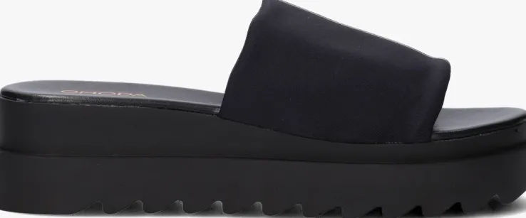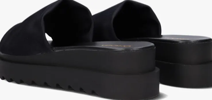 Comfort en stijl zijn prima te combineren. Dat zie je wel aan deze zwarte slipper 7360 van het eigen Omoda merk. De brede band van soepel en zacht textiel voelt samen met het lederen voetbed erg zacht aan. De loopzool is gemaakt van lichtgewicht rubber en is onder de voorvoet bijna 4 centimeter hoog en loopt naar achteren toe op tot ruim 5 centimeter voor wat extra centimeters zonder dat dit ten koste gaat van jouw comfort. Combineer ‘m onder al je zomerse outfits of juist onder een pantalon voor een nonchalante look tijdens je zakelijke afspraak.