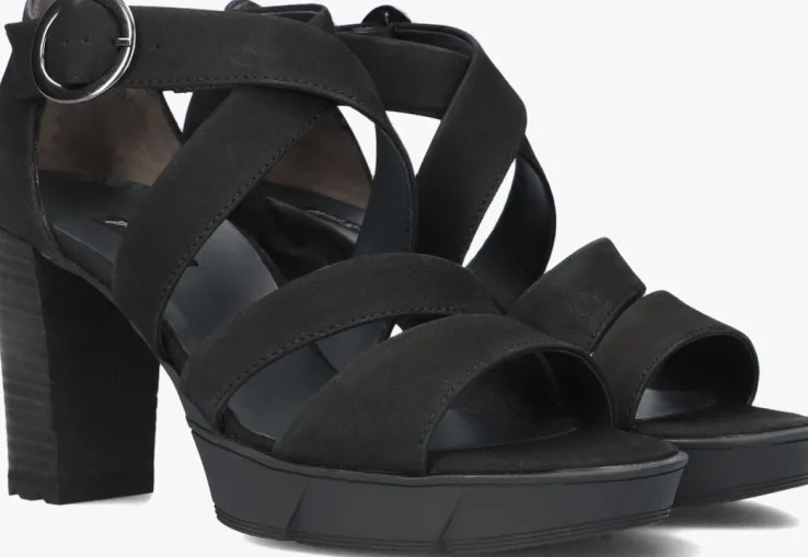 Elegante zwarte sandaal 7942 met blokhak en plateau van het merk Paul Green. Dit model is uitgevoerd in hoogwaardig nubuckleer met een dempend voetbed van leer die een comfortabele demping biedtde hele dag door. Dit item is heel stijlvol door de mooi vormgegeven band op de voorvoet en wreef en het enkelbandje met zilverkleurige gespsluiting.De gelaagde blokhak isbijna 10 centimeter hoog, maar door hetplateau onder de voorvoet van ruim 2 centimeterdik loopt deze sandaal erg comfortabel en is hij daardoor heel geschikt voor al jouwdagelijkse bezigheden. Door de perfecte pasvorm in combinatie met het dempendevoetbed en de flexibele rubberen zool ervaar je veelloopcomfort. Combineer ‘m onder een wijde jurk of juist onder een jeans om je outfit een trendy touch te geven.