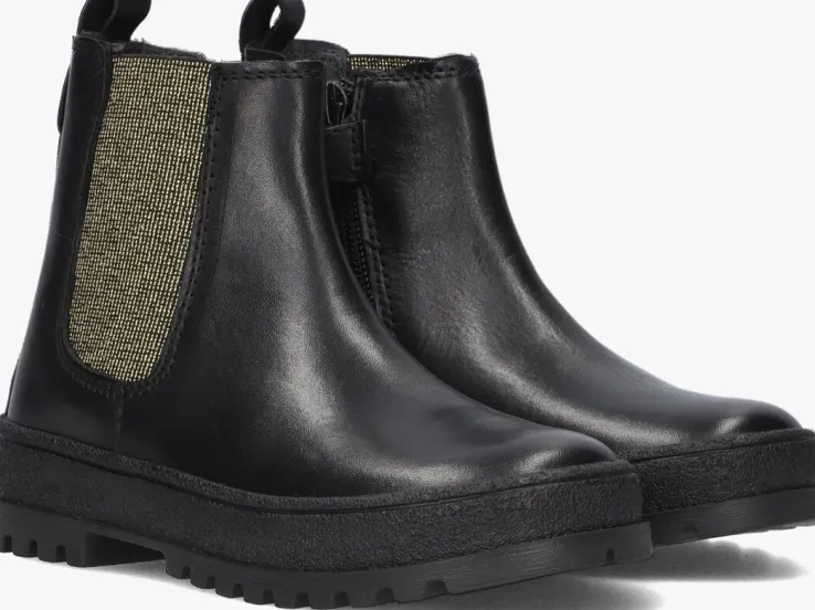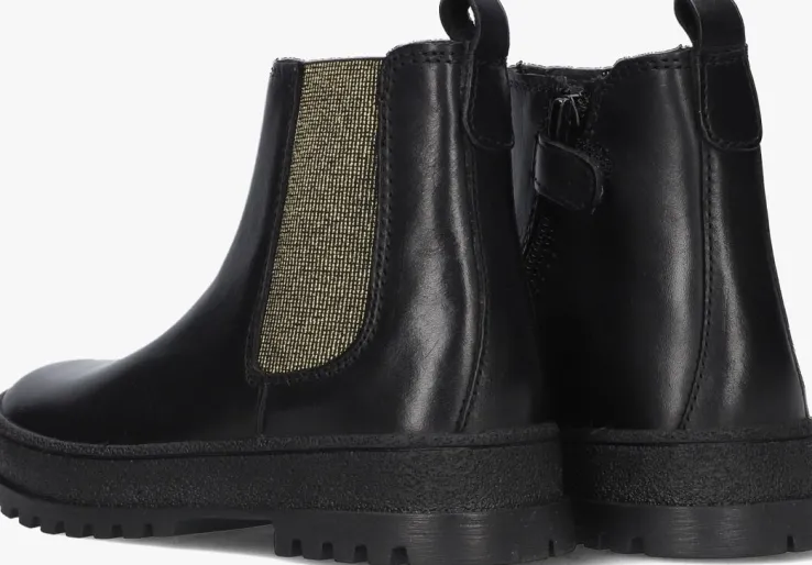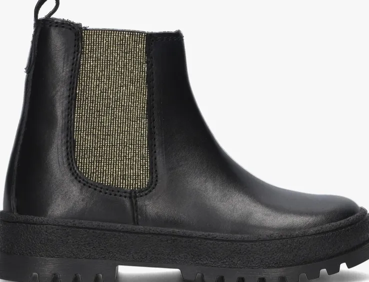 Een stoere meid verdient een stoere chelsea boot. Ga voor deze leuke P1659 boots uit de collectie van het merk PINOCCHIO. De buitenkant is gemaakt van zwart leer met een elastisch goudkleurig glitter paneel aan de zijkant voor extra comfort. Het binnenwerk is leer gevoerd met een uitneembaar voetbed en dankzij de ritssluiting in combinatie met de aantreklus op de schacht trek je ‘m gemakkelijk aan en uit. De zwarte rubberen zool heeft een opvallend uiterlijk dankzij het reliëf patroontje in de zoolrand. Ook is de zool wat dikker dan gebruikelijk waardoor het een hele trendy boot is geworden. Het gripvaste profiel zorgt voor een goede grip en stabiliteit.