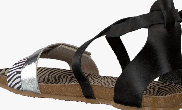 Met deze trendy sandaal 19280 van het merk RED-RAG geef jij je outfit een fashion boost! Dit model is uitgevoerd in zwart leer met twee bandjes over de voorvoet welke zijn voorzien van een klittenbandsluiting. Eén zilverkleurig leren bandje en één suède bandje met zebraprint. Ook het suède voetbed is afgewerkt met een trendy zebraprintje. Voor een optimaal comfort en een goede demping is de sandaal voorzien van een kurken tussenzool en de loopzool heeft een rubberen crêpezool.