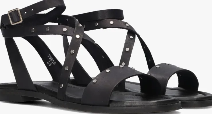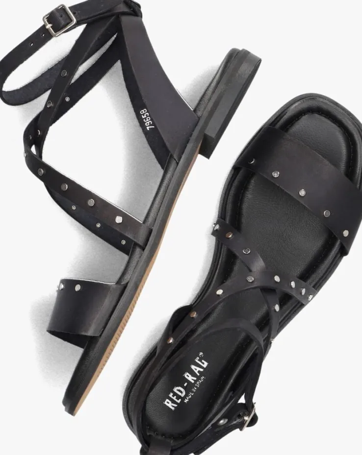 Stap in stijl met deze prachtige zwarte leren sandalen van RED-RAG. Deze cognac kleurige leren sandalen hebben zilverkleurige studs op de bandjes en is met de gesp sluiting aan te doen. De sandaal heeft een zacht leren binnenvoering met rubberen loopzool en is erg comfortabel. De sandaal is de perfecte keuze voor dames die op zoek zijn naar comfort en elegantie.