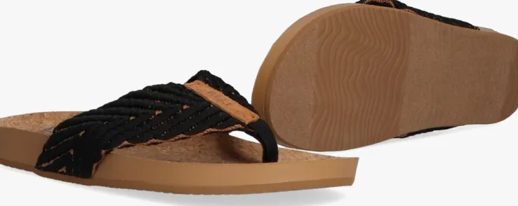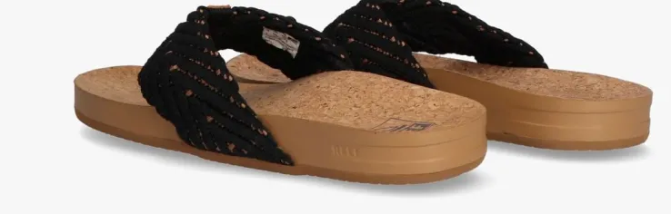 Uit de collectie van het merk Reef is deze buitengewoon comfortabele teenslipper CUSHION STRAND. Dit zwartemodel heefteen gebreide wreefband met een mooi zigzagpatroonen is afgewerkt met eentextiel teenstuk en bruin suèdeinzetmet een reliëf merkopdruk.Het binnenwerk heeft een textiel voering en het licht voorgevormdvoetbed heeft een kurken toplaag wat zorgt voor een ultieme demping en omfortabel gevoel. De hiel en de zoolrand zijn gesierd met een merkopdruk.De supersoepele zoolis voorzien van een gripvast profielvoor veel grip en stabiliteit bij iedere stap.