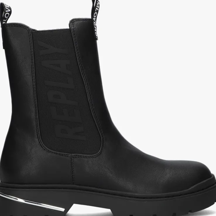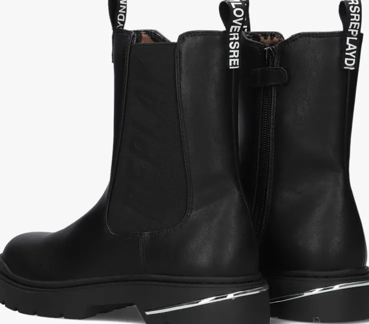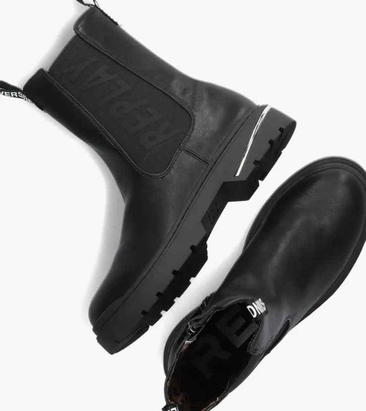 Hey meiden! Deze zwarte JOPLIN 6 Chelsea boots van REPLAY zijn echt een must-have voor jullie schoenencollectie. Met hun leatherlook buitenkant en elastische inzet aan de buitenzijde zijn ze super trendy en stijlvol. De chunky zool met goudkleurig element geeft ze een stoere uitstraling en zorgt voor extra comfort. En het beste van alles? Het voetbed is uitneembaar, dus je kunt ze helemaal aanpassen aan jouw wensen. Met de handige ritssluiting zijn ze ook nog eens makkelijk aan en uit te trekken. Dit model is afgewerkt met textielen aantreklussen en witte tekst. Combineer deze boots met een stoere jeans en een oversized trui voor een trendy en casual look. Of draag ze onder een jurkje voor een edgy twist.