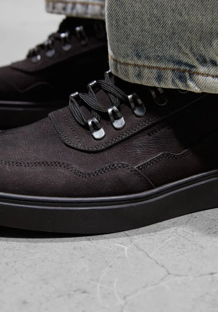 Ontdek de stijlvolle sneakers LJ2502 voor heren. Deze zwarte schoenen van STEFANO LAURAN combineren elegantie met comfort. De ronde neus en normale zool zorgen voor een tijdloze uitstraling, terwijl het nubuck aan de buitenkant een luxe touch geeft. Binnenin omarmt het leer je voeten met zachtheid. De rubberen zool biedt grip en duurzaamheid, ideaal voor een dag op kantoor of een avondje uit. Combineer ze moeiteloos met een nette chino of een casual jeans voor een verfijnde look. Met de veter sluiting pas je ze perfect aan voor ultiem draagcomfort. Een must-have voor elke stijlvolle garderobe.