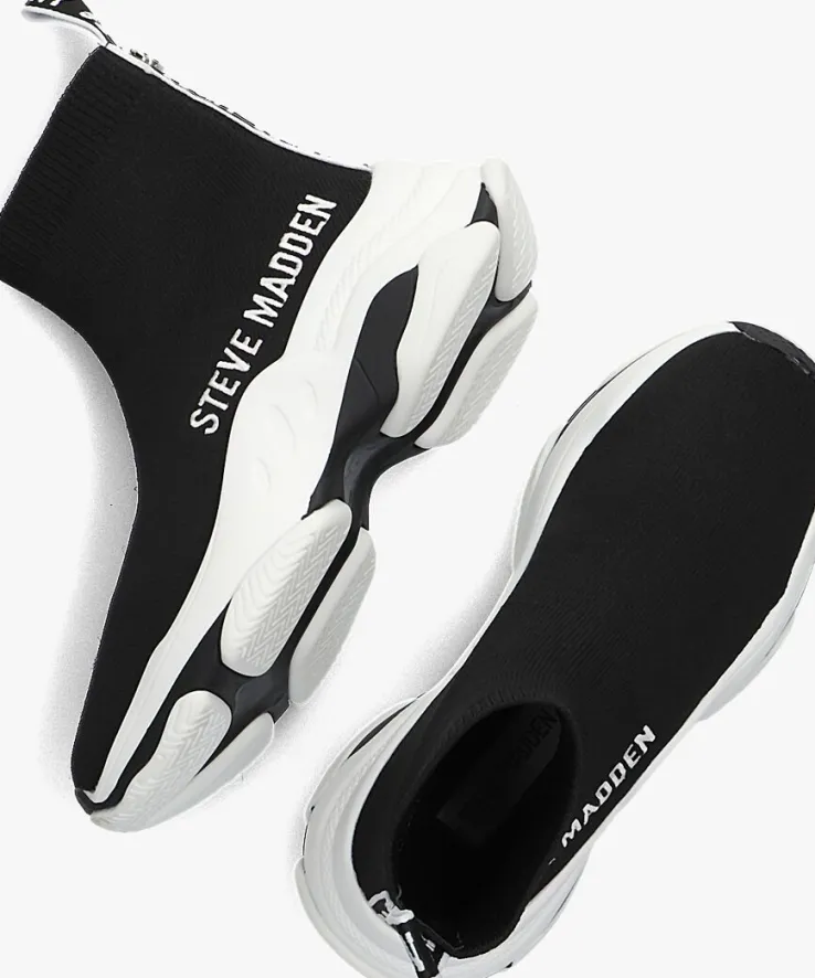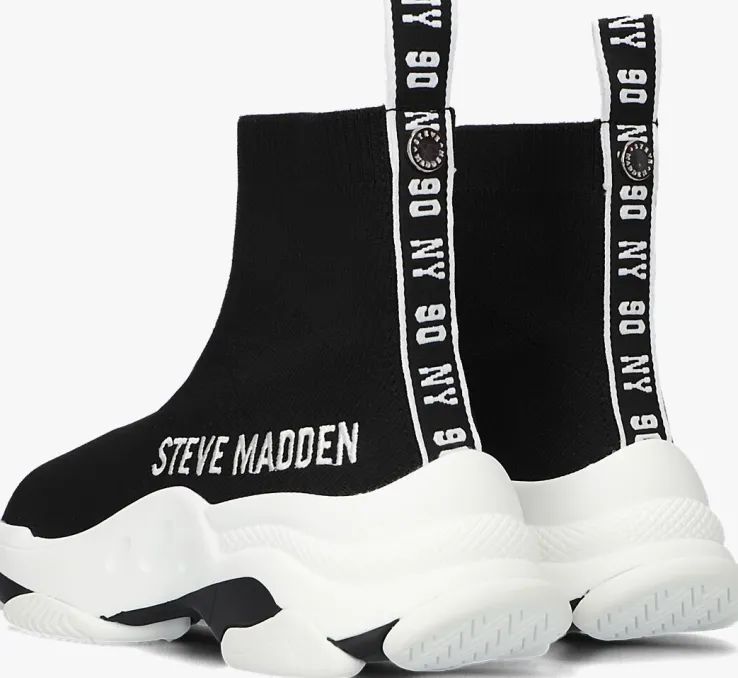 Hoe gaaf zijn deze JMASTER ‘knitted sok’ sneakers van het vooruitstrevende merk STEVE MADDEN! Deze zwarte sneakers met witte accenten zijn gemaakt van gebreid textiel die heerlijk aansluiten aan je voeten. Het binnenwerk is gemaakt van zacht textiel met een comfortabel foam voetbed, waardoor jij hele dagen op deze beauty’s kunt lopen. De chunky zool met golvende lijnen geven hem die extra finishing touch. Trek hem snel aan en uit met de handige aantreklus met NY 90 reliëf aan de achterzijde. Het geborduurde merklogo op de zijkant maakt ’m helemaal af! Combineer deze sneakers met al je favoriete outfits en je bent ready to go.