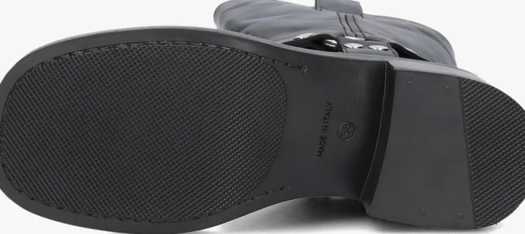 Halfhoge bikerboots voor dames van het merk Strategia. Deze hoge zwarte laars is uitgevoerd in leer. Deze westernlaars heeft een halfronde neus en wordt gesierd met riem met gesp rondom de enkel. De binnenzijde is uitgevoerd in leer en een stevig contrefort draagt bij aan het loopgemak. De schacht heeft treklussen om het aan- en uittrekken te versoepelen. De hak meet circa 4 cm en de rubberen loopzool heeft een medium profiel.