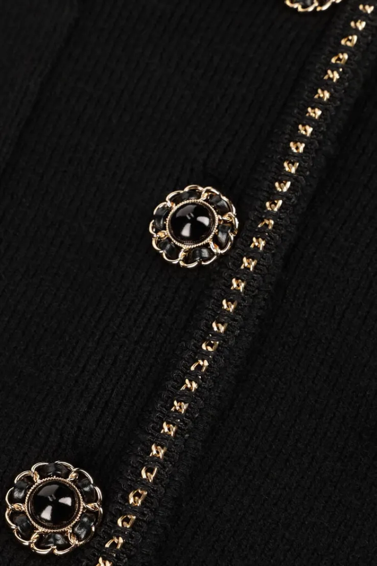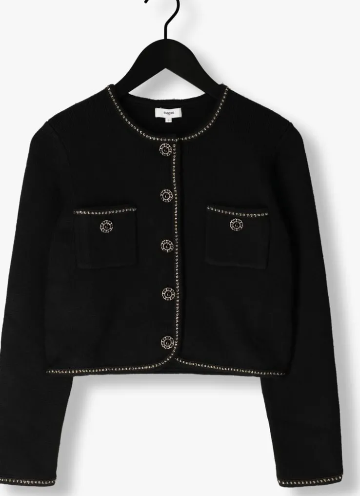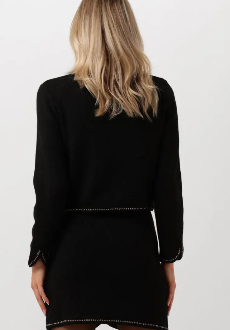 Ontdek het stijlvolle zwarte vest GARVI van SUNCOO. Perfect voor een dag op kantoor of een gezellige avond uit. Dit vest combineert moeiteloos met een strakke jeans of een elegante rok. De zachte stof, de goudkleurige accenten en het tijdloze design zorgen voor een comfortabele en chique look. Draag het over een blouse voor een professionele uitstraling of combineer het met de bijpassende minirok. GARVI is een veelzijdige toevoeging aan je garderobe, ideaal voor elke gelegenheid.