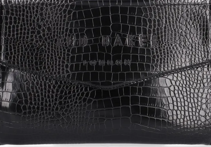 Geef je tassencollectie een welverdiende update met deze zwarte clutchCROCEY van het merk Ted Baker. Je combineert hem leuk bij al je favoriete outfits en neemt er stijlvol je belangrijksteessentialsin mee. Dezeclutchis gemaakt van leatherlook PVC en is voorzien van een krokodillenprint en een lichte glans. Op de klep bevindtzich een oversized reliëf merkopdruk en een onzichtbare magneetsluitingom de tas mee af te sluiten en het binnenwerk is uitgevoerd in canvas textiel. Draag ‘m in je hand of aan je pols met het afneembare polsbandje. Afmetingen: 26x 4 x 18cm (lengte x breedte x hoogte)