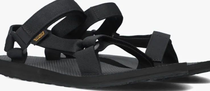 Ga op avontuur met deze extreem comfortabele M ORIGINAL UNIVERSAL sandaal van het outdoormerk Teva! De zwarte bandjes hebben een lichte glans en zijn gemaakt van waterbestendig, superduurzaam polyester wat snel droogt. Met de gemakkelijke klittenbandsluiting trek je deze schoen snel aan en uit en kun je de pasvorm snel en perfect afstellen.De rubberen buitenzool heeft vanzelfsprekend een grof profiel voor veel grip bij die avontuurlijke wandeling in de bergen of door de stad!